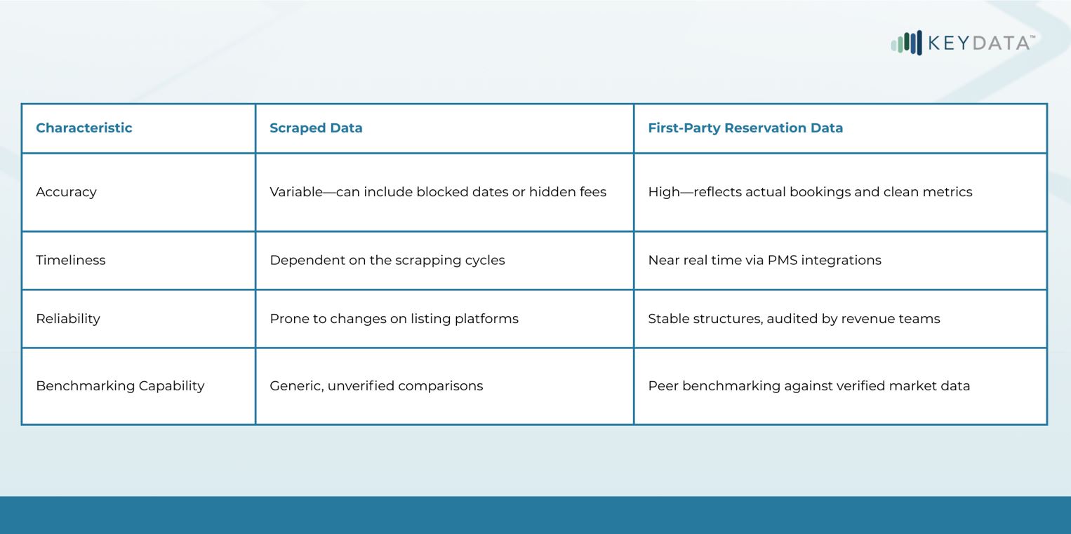 - Scraped data comes from public listings—like rates and availability on Airbnb or Vrbo—and surface-level metrics such as calendar gaps.