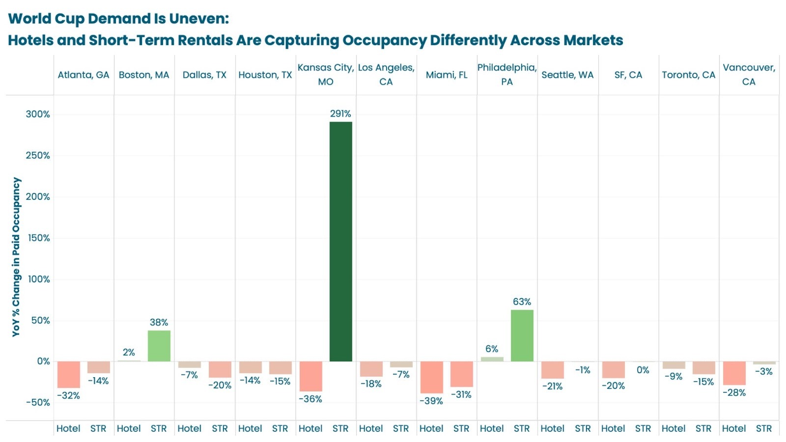 • Kansas City: Occupancy down ~36% for hotels, up 291% for STRs